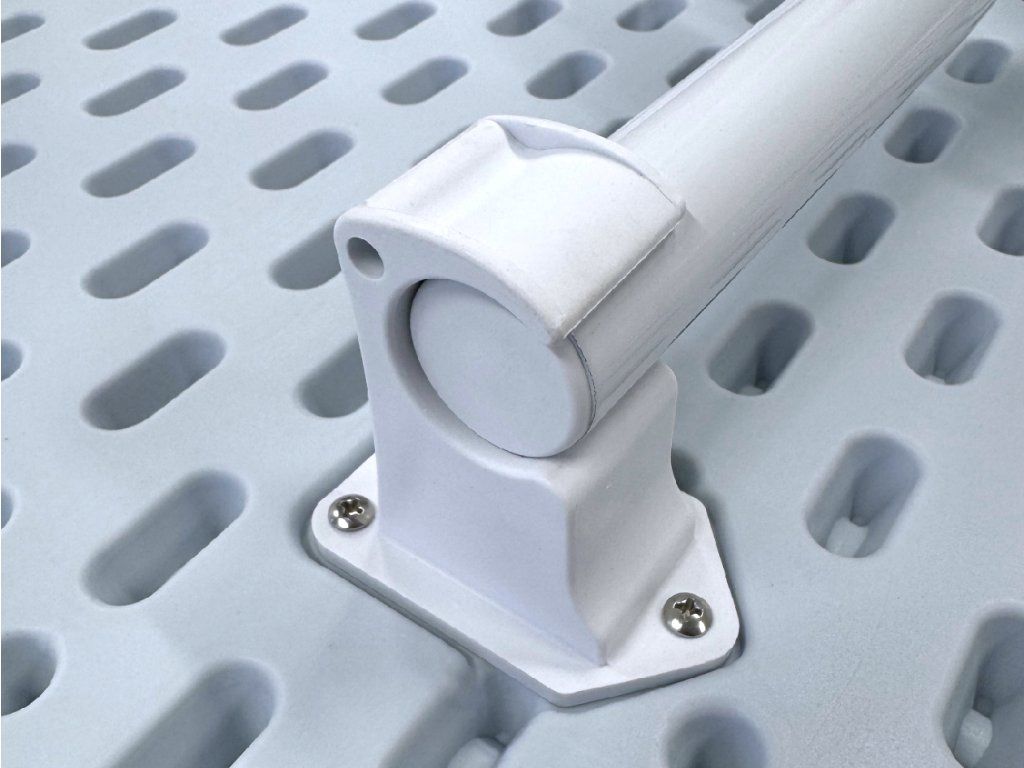 • materiál: kovové lakované podnože - profil 28 * 1,50 mm + biela odolná plastová doska - hrúbka 4,5 cm