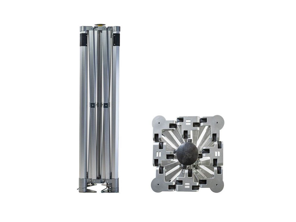 Základ párty stanu je rovnaký ako pri rade BIG HEXAGON, teda celohliníková konštrukcia o sile 2,5 mm s celokovovými spojmi, avšak s výrazným rozdielom vo výške strechy. Centrálne teleskopy sme predĺžili o 42 cm.