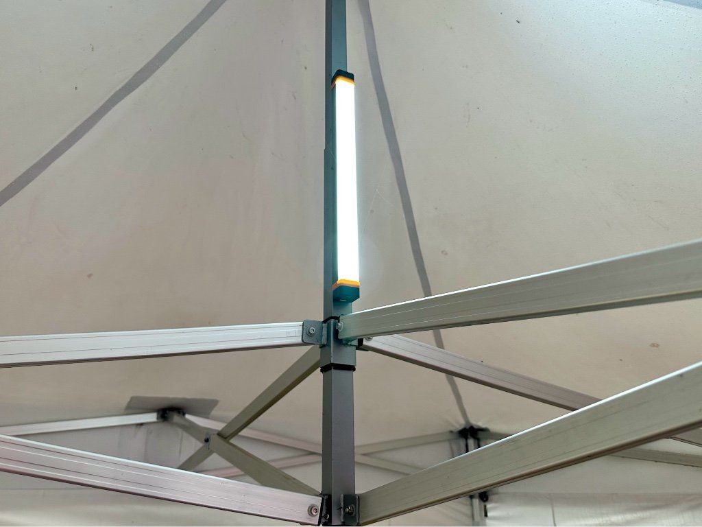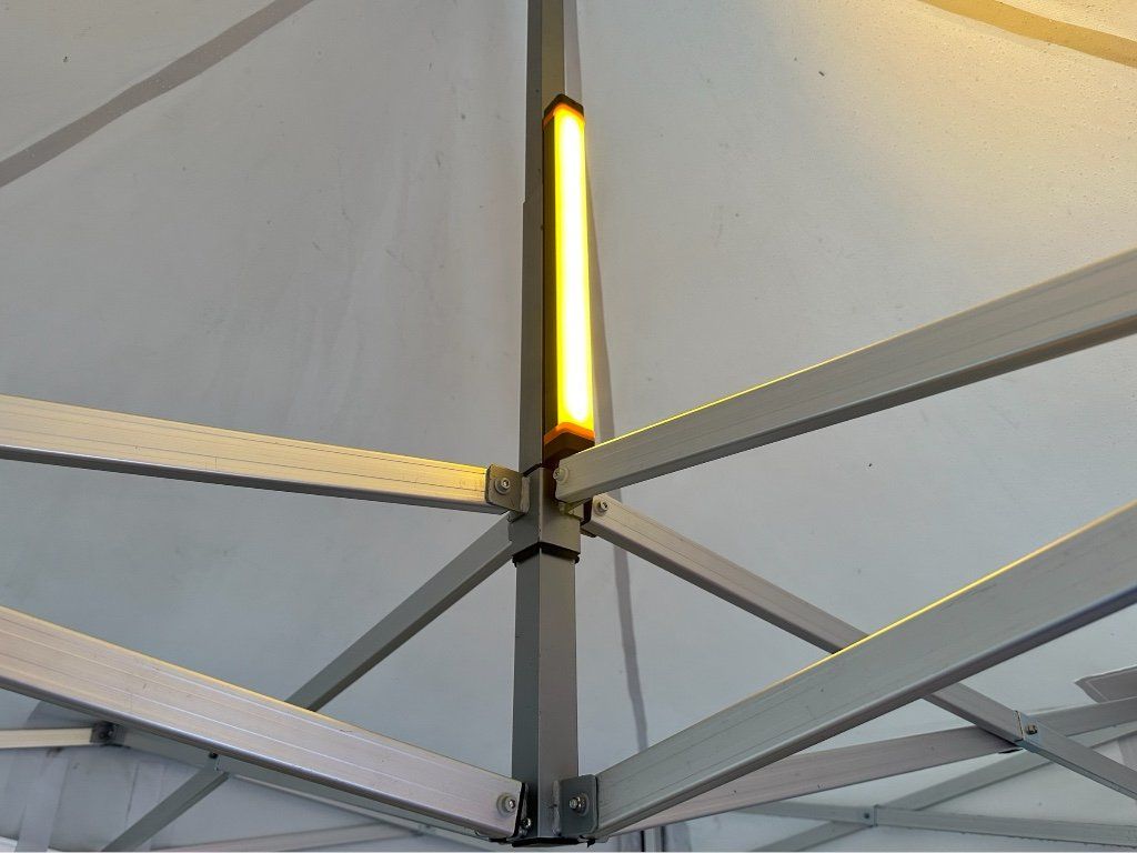 Svetlo pripevníte kdekoľvek vo vnútri nožnicových stanov pomocou sťahovacích pások alebo na centrálny oceľový pól dokonca bez sucháčov. Svetlo je totiž magnetické a bude spoľahlivo držať samo na všetkých železných materiáloch. Len nepriľne k hliníku. Pokiaľ potrebujete intenzívnejší svetelný tok, umiestnite svetlo tak, aby neoslňovalo Vás ani zákazníkov. Riešením je tiež nechať ho jednoducho svietiť do strechy. Pamätajte prosím na to, že svetlejšie strechy svetlo odrážajú a tmavšie odtiene striech ho naopak pohlcujú. Tieto skúsenosti zdieľa aj naša požičovňa párty stanov . Vo veľkej väčšine prípadov nechávame svetlo svietiť nahor do strechy. Používame biele strechy z výrobkovej rady BIG HEXAGON PVC EXTREME , ktoré svetlo dostatočne odrážajú späť dole. Niektorí naši zákazníci používajú v stánku svetla dve. Jedno svieti dole, druhé hore do strechy. Osvetlená strecha je z diaľky neprehliadnuteľná a pôsobí ako magnet na Vašich zákazníkov. Strecha fakticky svieti. Máte od nás vyrobenú prednú polovičnú stenu (polobok) s vlastnou potlačou a prajete si ho pekne presvietiť? S ľad svetlom a presvietenou prednou plachtou s Vašou reklamou prilákate viac zákazníkov. Prechádzate východnými Čechami v neskorých hodinách? Zastavte sa a my Vám ukážeme, aký veľký svetelný výkon táto malá lampička za výbornú cenu v tme má. Ľad lampa s vlastným akumulátorom býva často využívaná aj ako intenzívny zdroj svetla, pokiaľ si prajete presvietiť akékoľvek skladacie stoly s elastickými obrusmi a pozdvihnúť tak celkový dizajn Vášho eventu.