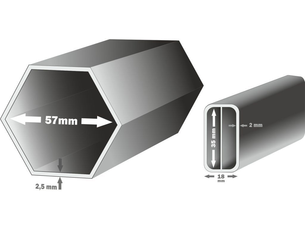 | ? Hliníkový profil vrchnej nohy: | šestihran, průměr 5,7 cm, norma AW 6060 T66 |