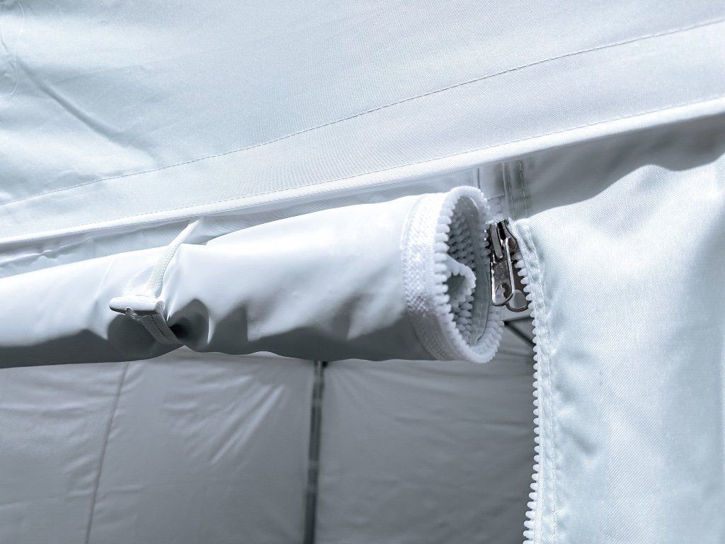 Hliníková noha s oceľovou pätkou je pri všetkých našich stanovách neoddeliteľne spojená. Žiadne tenké samorezné skrutky alebo chabé nity ako pri podobných stánkoch konkurencie na našich párty stanoch nenájdete! Vlastné bohaté skúsenosti získané z 20 rokov testovania v praxi nás vyškolili natoľko, aby sme mali naše výrobky vyladené do posledného detailu. S nami sa Vám nikdy nestane, aby stan ulietol z riadne ukotvených pätiek len preto, že bočný tlak vetra spôsobí kolaps nekvalitného prepojenia pätky s nohou. Oslovenie "výrobcu stanov" znie dobre. Ale! Ak kúpite stan od výrobcu, ktorý ho nemá vyskúšaný v praxi , môžete sa sklamať úplne rovnako, ako u prepredajcov, ktorí Vám len sprostredkujú dopravu a stan reálne v praxi nikdy nevideli.