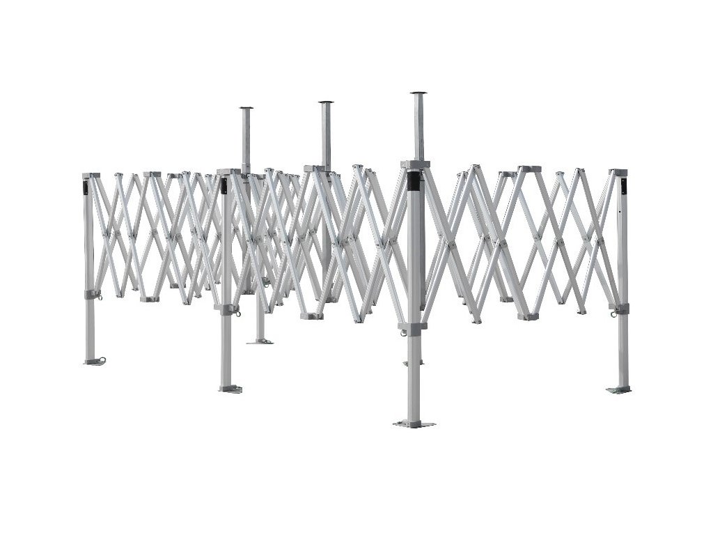 ? Materiál konštrukcie: | hliník - (nohy + stropné profily) + oceľ (pätky nôh) |