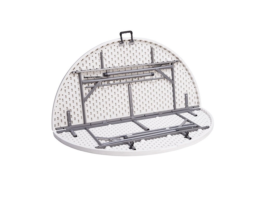 Skladací stôl, ktorý je pre lepšiu manipuláciu polený. Vhodný k stravovaniu až 8-10 osôb. Ideálna na rôzne trendy eventy - svadby, oslavy, firemné akcie - všade, kde chcete na svojich hostí zapôsobiť. Vysoká odolnosť vrchnej polyetylénovej dosky.