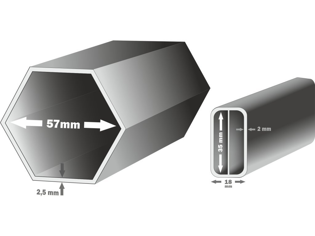 | ? Hliníkový profil spodnej nohy: | šestihran, průměr 5,0 cm, norma AW 6060 T66 |
