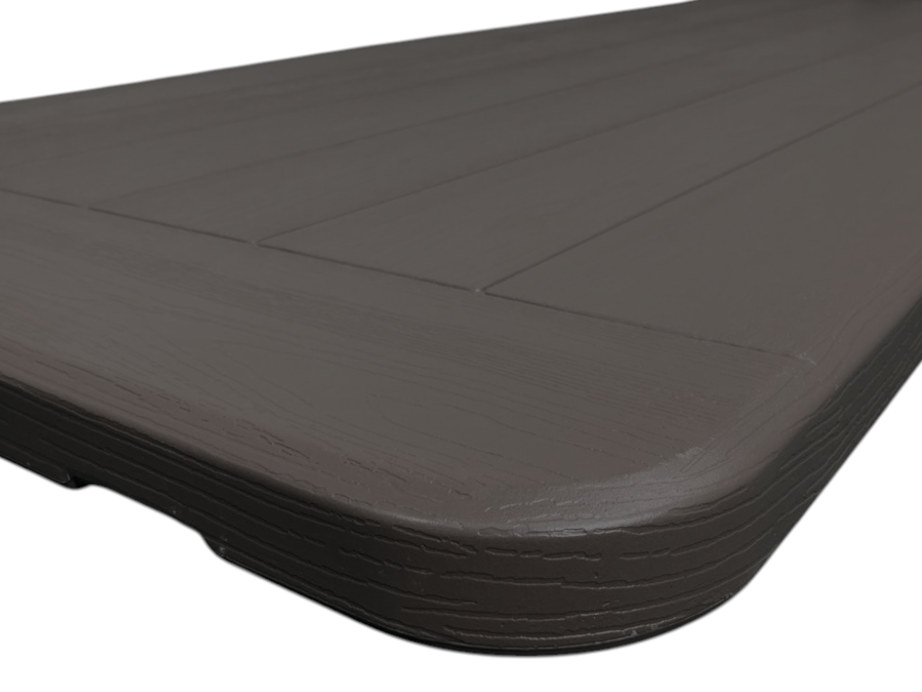 - materiál: kovové lakované podnože - profil 25 * 1,00 mm + odolná plastová doska so vzorom - imitácia DREVA (hnedej farby) - hrúbka 5 cm