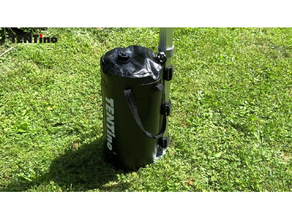 Naše odporúčanie pre bezpečnú inštaláciu je minimálne 25–30 kg na jednu nohu stanu . Vodné vaky TENTino® sú navrhnuté presne tak, aby tento štandard spĺňali pri jedinom kuse na nohu, čo z nich robí jedno z najefektívnejších a najrýchlejších riešení na trhu.